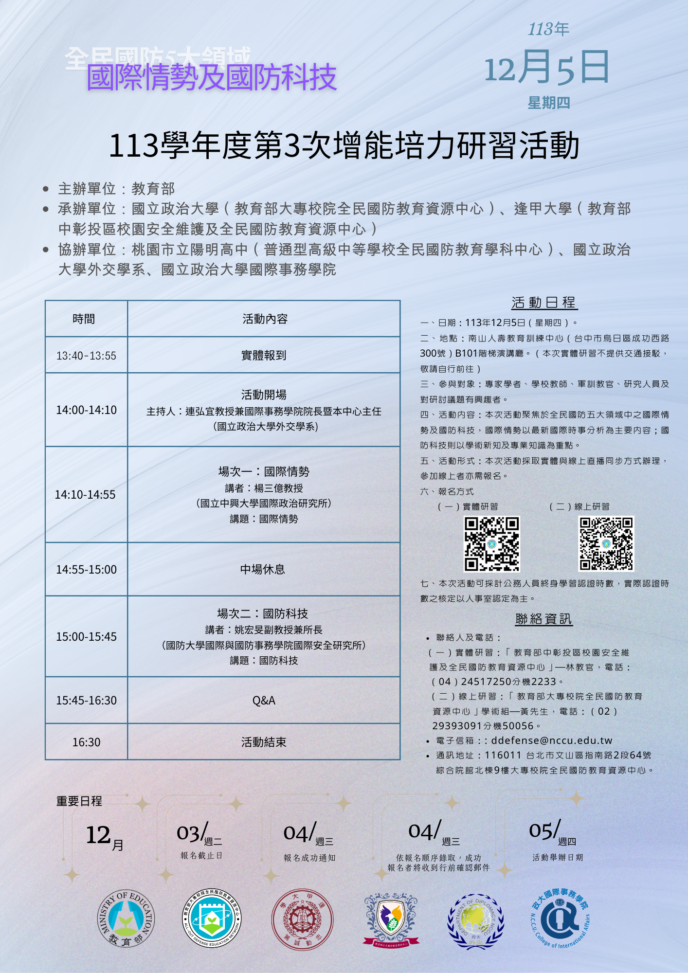 2.辦理大學儲備軍官訓練團(ROTC)及國軍人才召募報名。